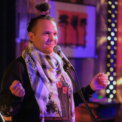 Charly Mullot est un·e artiste non binaire, immigré·e du nord de la France en 2019 pour poser ses valises à Tio'tia:ke (Montréal). Alternant entre le conte, l’écriture, la mise en scène, la radio et le drag, Charly cultive une identité plurielle et interdisciplinaire.